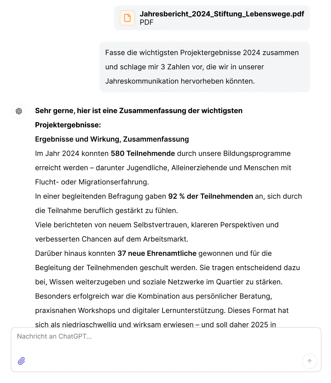 Unsere Mission: Organisationen befähigen, mit Hilfe von KI neue Möglichkeiten zu erschließen, von effizienteren Abläufen bis hin zu besserer Unterstützung für die Gemeinschaft. Wir machen KI zugänglich, verständlich und sicher, damit Sie sich auf das konzentrieren können, was wirklich zählt: